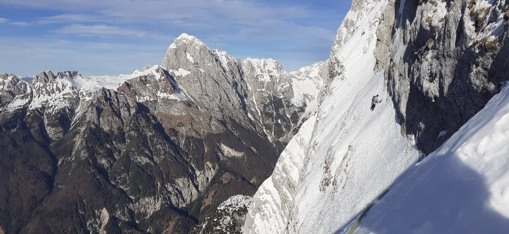 Lovska smer v Loški steni. Zimski tabor Alpe.
