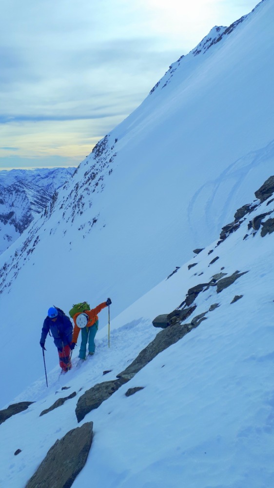 spustimo se za salbih 100 vm potem pa postamfamo nazaj na greben opcija bi bila tudi direkt dol in levo v Malnitz kjer opazimo Turne sledi