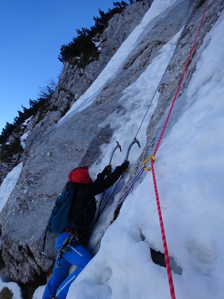 Prestop navzdol v ozek žleb škripovca