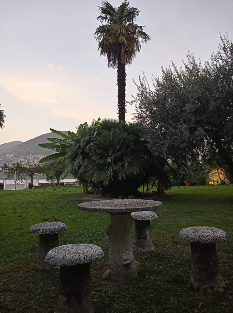 Smo rekli, da bomo v tem delu vrta spili jutranjo kavo, pa smo bili preveč utrujeni, da bi se sprehodili 10 metrov.