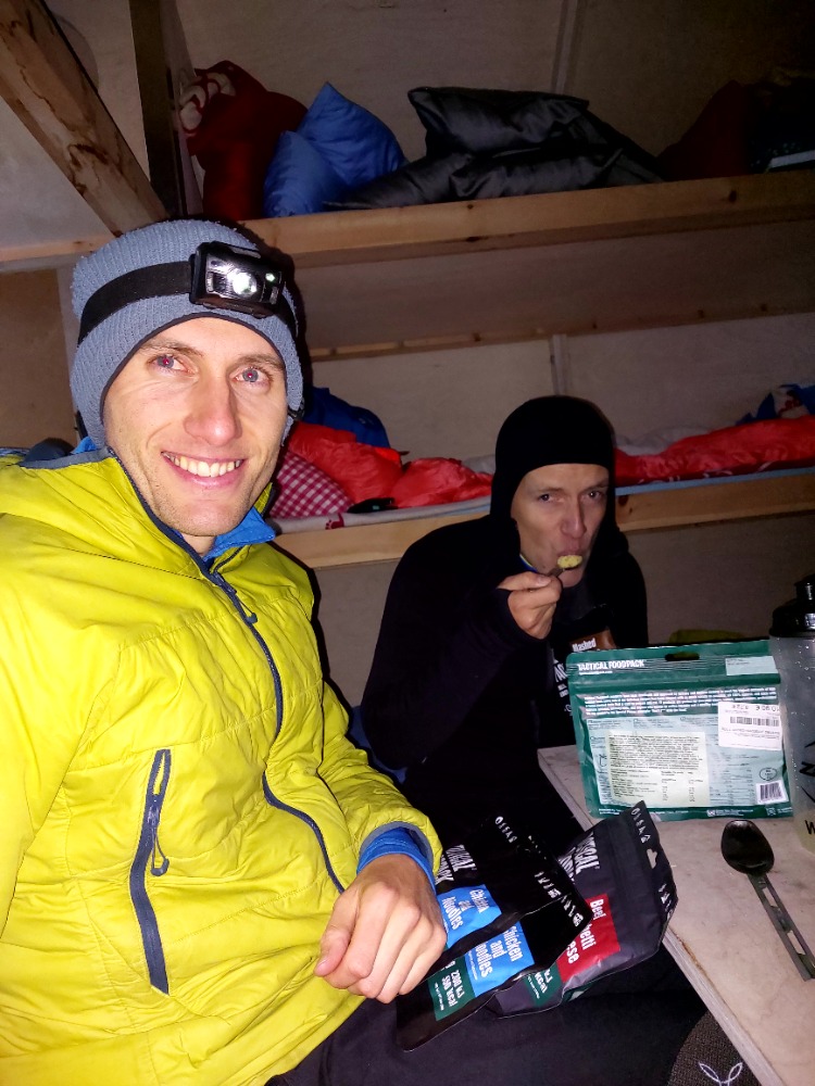 Sobotni cilj dosežen. Glocknerbiwak. Modern bivak v katerem se udobno namestimo in pojemo nekaj toplega da si povrnemo moči.