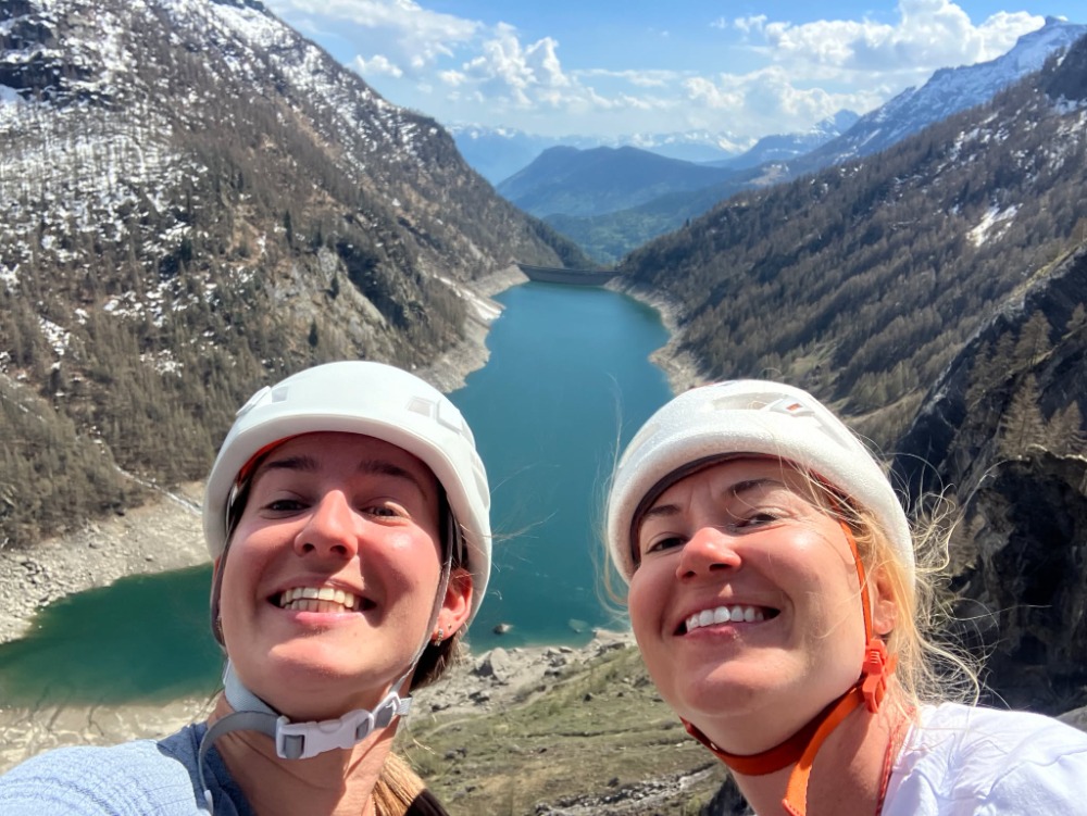 Lago di Agaro v ozadju. Do jezera se sprehodis 15min skozi tunel. Navrtanih je več smeri, težavnosti od 6a naprej.