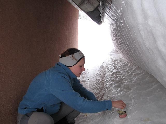 Ker je precej pihalo, sva si našla pri koči prijetno zavetje.