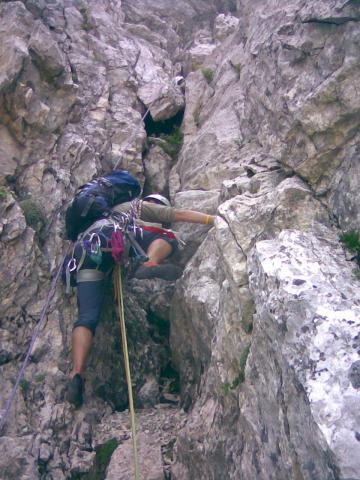 Aljaž v zadnjem raztežaju Bavarske smeri pred izstopno prečnico