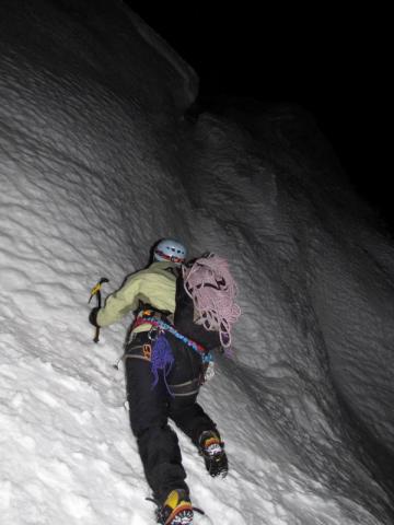 Najprej sva šla samo pogledat. Prav resnih namenov s to grapo nisva imela. No potem se je izkazalo, da bolše ne bi moglo bit. Tu sva začela plezati. Pred par leti je prav tu nekje Blaž obrnil po kakih 25m plezanja po poprhani skali.