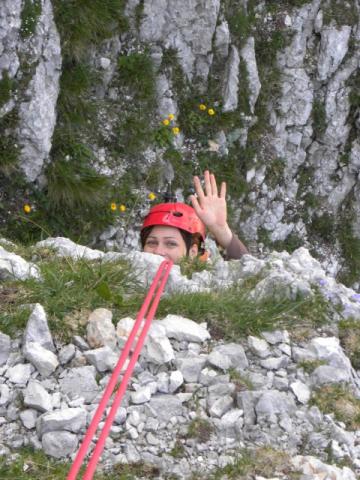 sestopila sva čez Gamsov skret (hvala lepemu in sanjskemu za koristne informacije). Del zajl je bil potrgan, zato sva se odločila abzajlat. To sva kasneje obžalovala; štrik se je zataknil in David od takrat ni več tak navdušenec abzajla