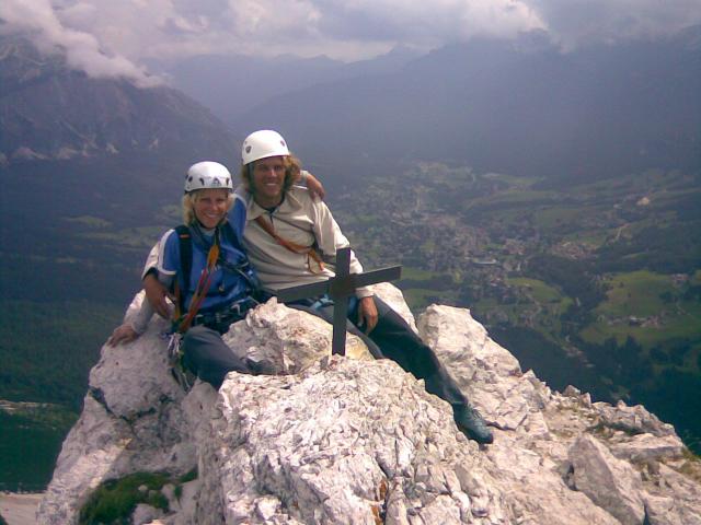 Katja in Jure na Punti Fiames, zadaj Cortina