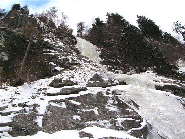 Ja, to je ON. Moj prvi večraztežajni slap. Ime mu je Wintasun. Po domače, Pri letečem cepinu. Dolg, švoh 200m. Težak, Miha je reku, da ni težak.WI4+