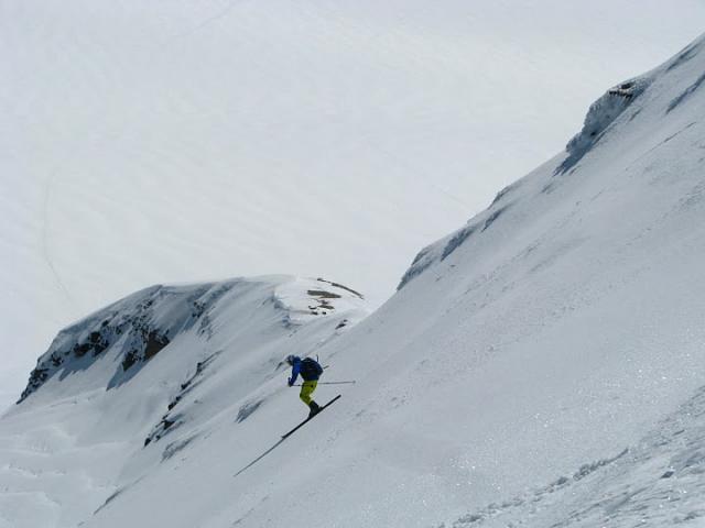 tale frirajder je bil v treh zavojih že spodaj na ledeniku