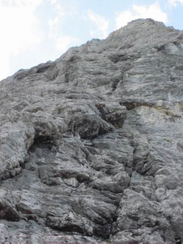 Če bi imeli to sliko v polni ločljivosti, bi prav na sredini ugledali Jemčkovo čelado. Z Matejem sta plezala Parižanko, ki vseskozi poteka le nekaj metrov desno od najine smeri.