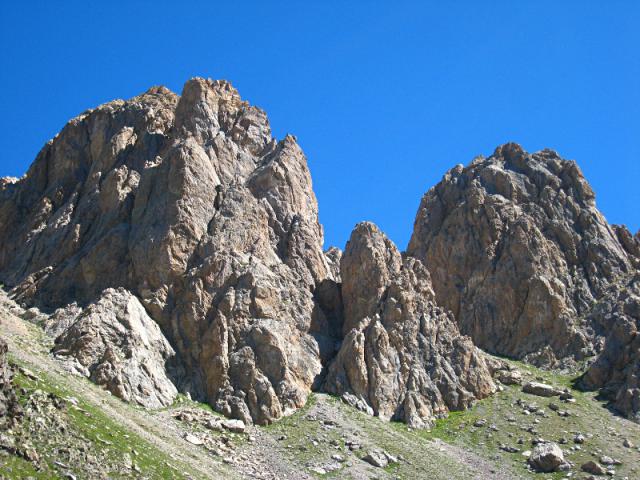 Na levi je Roche du Monetier (2782m). Lotila sva se njegove južne rame (Eperon Sud).