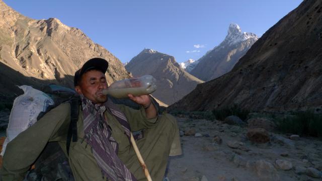 Ibrahim se naceja z vodo enega od pritokov reke Baltoro