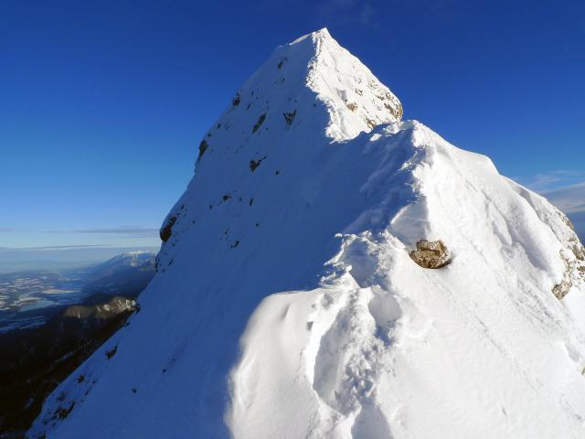 Zabavnejši del ture. Mejno plezanje po zašiljenem razu Dovške M. Kepe.
