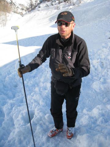 ..slikovito podučil o plazovih, o potrebni opremi, demonstriral načine ugotavljanja plazovitosti, iskanje ponesrečencev z žolnami, sondiranje in tehniko odkopavanja zasutih.