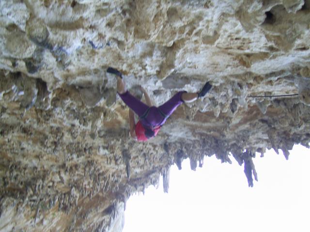 Ah sicer pa plezarija na Kalymnosu: najprej, plezaš takole po strehi (Grande grotta, smer Ivi, 7b)...