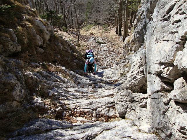 po žlebu navzgor