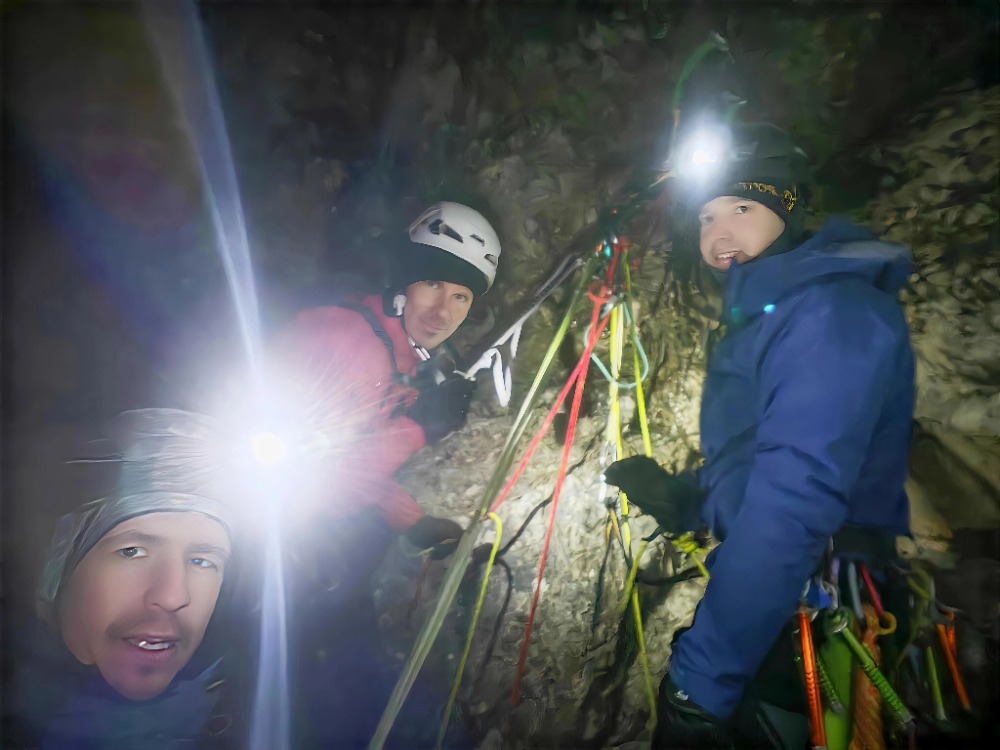 Uf, kaj nej rečem, kr pokonc zadeva😜 TDV je zborbu svečo, pred zadnim cugom je slap v soju čelk zgledal zelo rahitično, prav tako močno žuborenje slapu, ki nas se je še bolj odvrnilo od nadaljevanja. Pri abzajlu sem pa še malo potreniral polbiča... Reverso je hotel predčasno v dolino😝